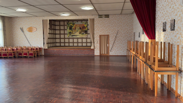 (In den Bildern zu sehen: Der Blick von der Bühne auf den lichtdurchfluteten Saal, der Blick auf die Bühne und der Blick auf einen Nebenraum, der ebenfalls für Veranstaltungen genützt werden kann. Die Bilder sind allesamt ©Bernd Robker.