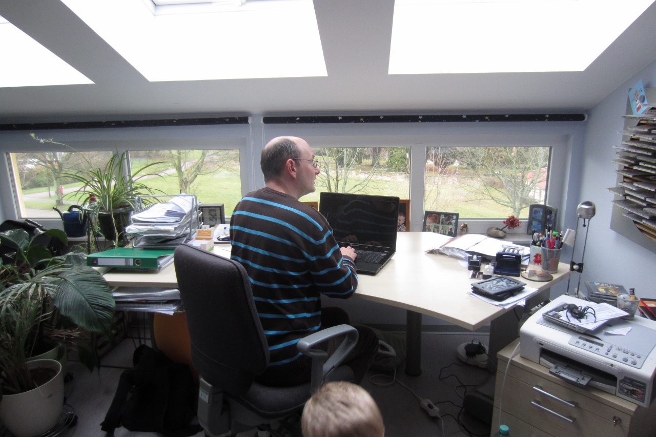 Das ist ja mal eine coole Schreibraumschiffzentrale … sogar mit Zimmerdschungelwelt und Weltraumheldennachwuchs … gefällt mir!